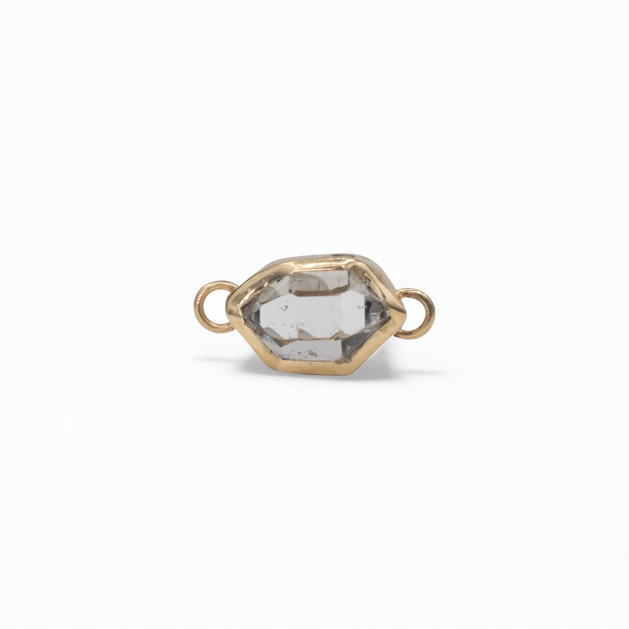 Bright, crisp, and perfect for everyday wear, the Herkimer Inline Charm is designed especially for our Infinity Bracelets. Each charm features a natural Herkimer diamond—known for its striking clarity and double-terminated shape—set horizontally in warm 14k yellow gold. The inline loops make it ideal for welding directly into your permanent bracelet, adding a touch of sparkle that feels effortless and modern.